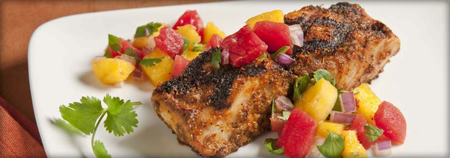 Seared Mahi Mahi with Grilled Pineapple-Mango Salsa